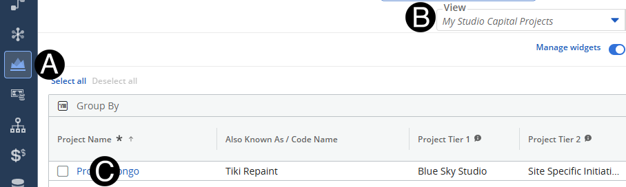 Select My Studio Capital Projects view.