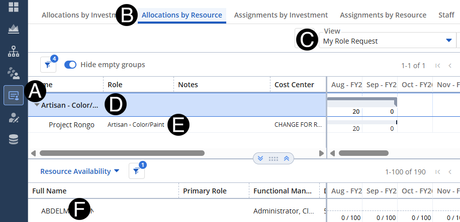 Click Allocations by Resource tab.