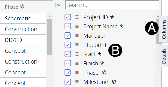 To show or hide columns on the grid