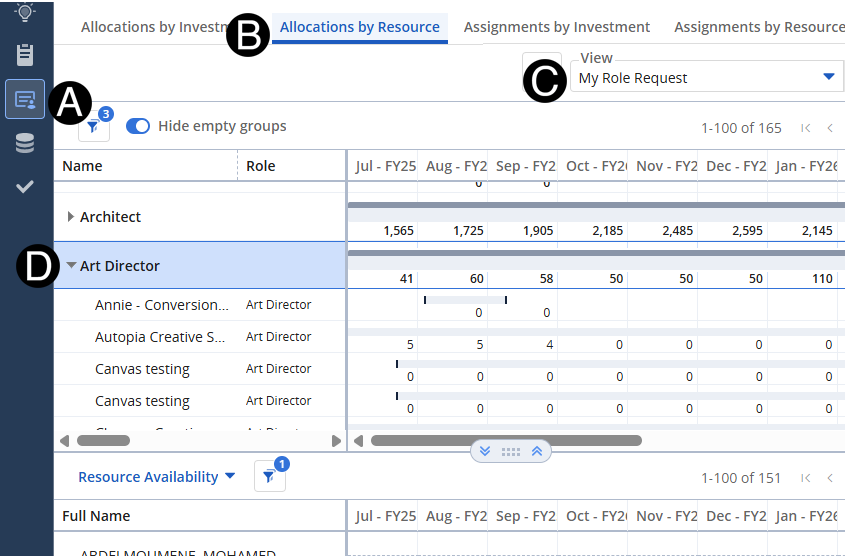 Click Allocations by Resource tab.