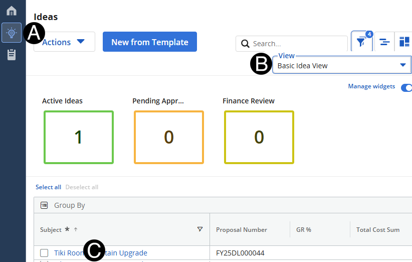 Click Idea that you want to enter cost codes for.