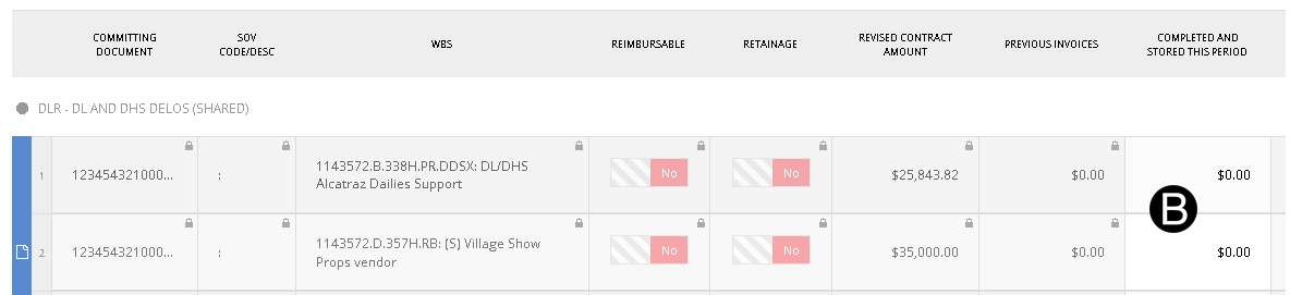 Enter values by SOV Code/Desc in Completed and Stored This Period field or as a negative value in the Retainage This Period field if requesting a release of retention.