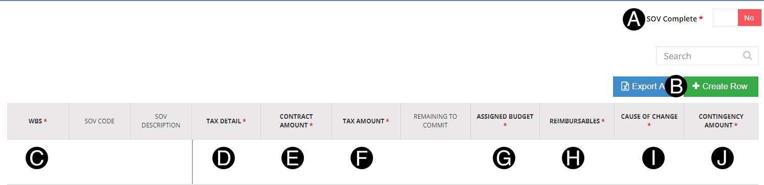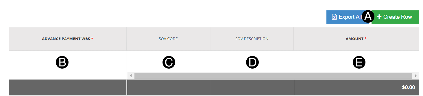 The same WBS is used or the Advance Payment offset which is automatically generated with the SOV Code and SOV Description. Both are required and must be unique. Example |