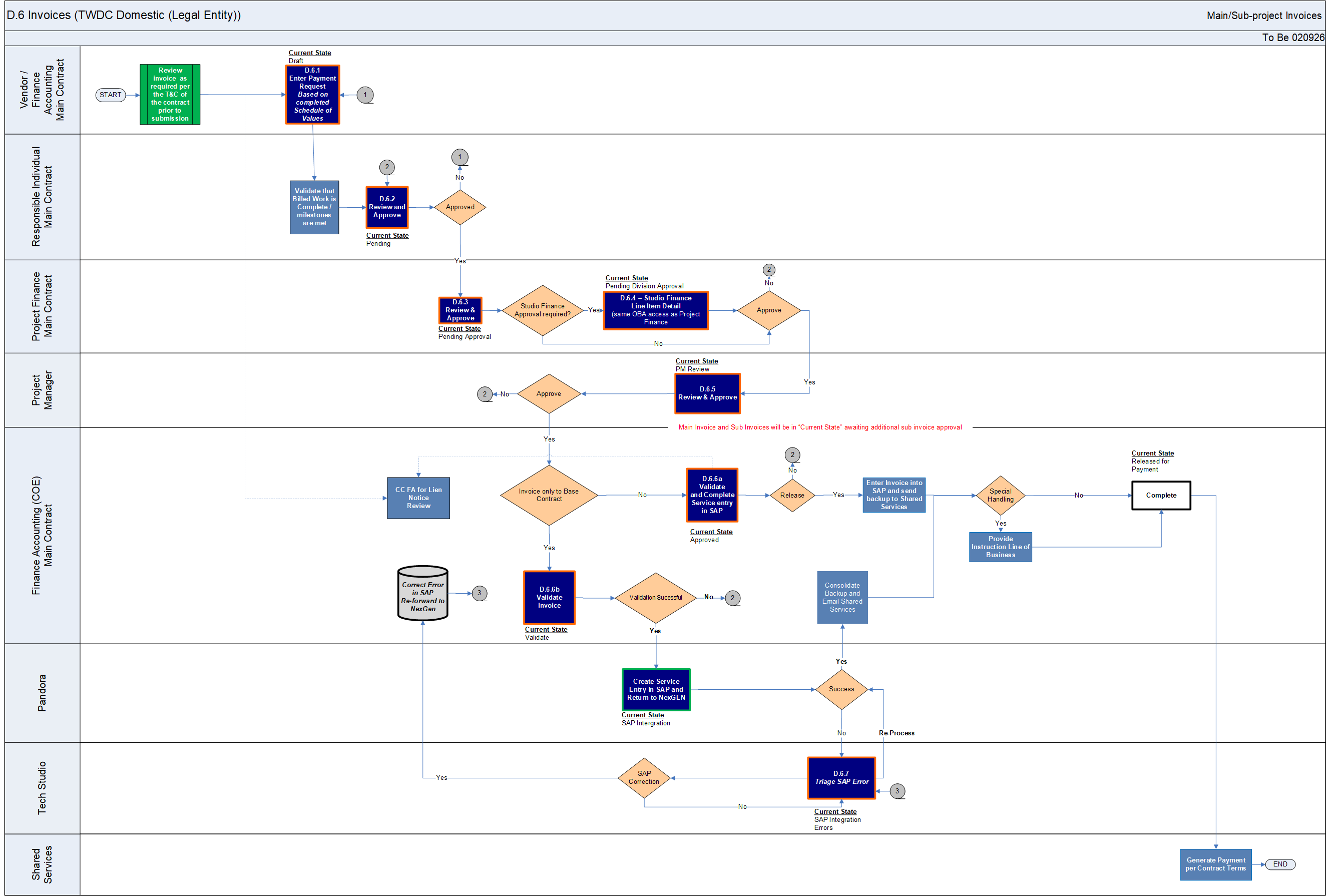 Upon all approvals being obtained, the document is processed to the Released for Payment state and Disney Shared Services is sent the documents to complete the process. The check/electronic payment will be processed from SAP based on invoice date and contract net terms. All documents must be received by Disney Shared Services by Noon EST on Tuesday for payment to be made during the weekly payment cycle which is on Thursdays.