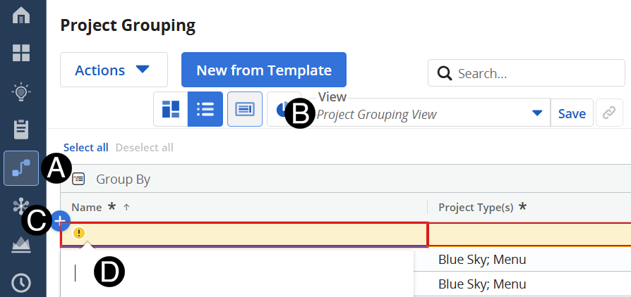 Select Project Grouping View from drop-down list.