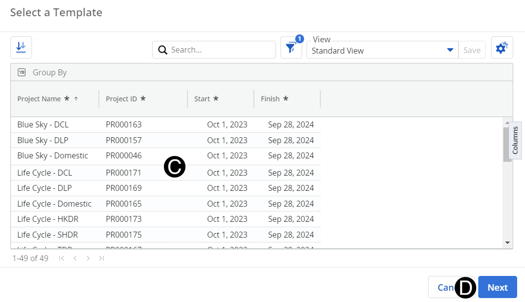 Select Project Grouping from drop-down list.