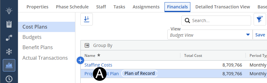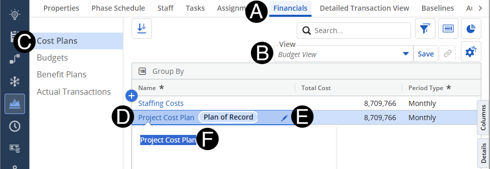 Select the Project Cost Plan.