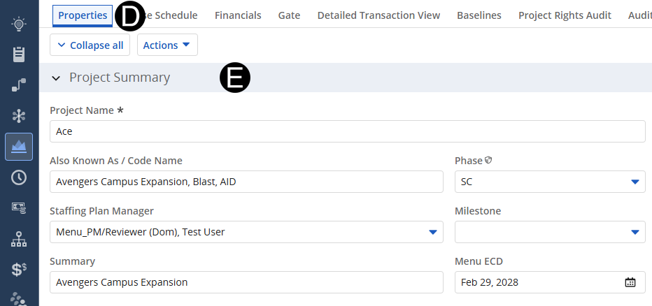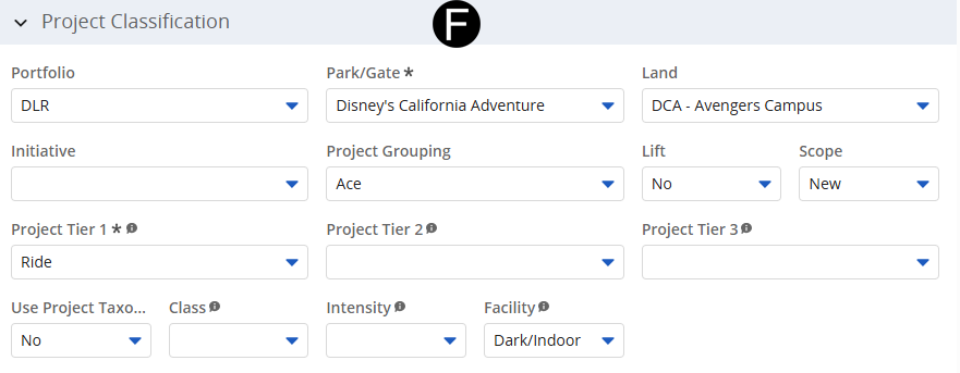 - Enter or Update attributes that have changed in Project