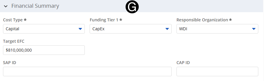 - Enter or Update attributes that have changed in Financial