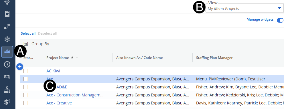 Select My Menu Projects from the View drop-down list.