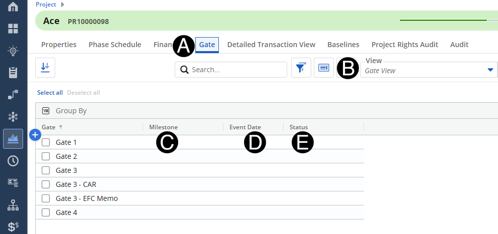When the project progresses through the governance process, the Gate and milestone event dates need to be documented by Operations Finance maintained for accurate reporting.