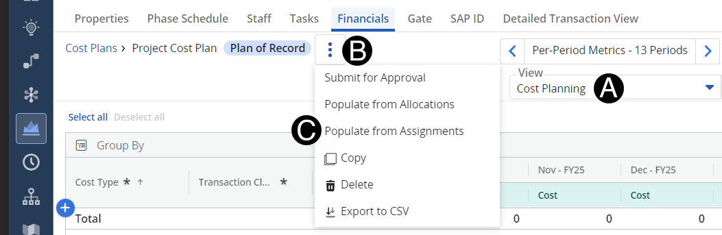 To capture all costs related to the labor side of a project, Staffing Plan Managers will need to enter forecasted costs for travel, relocation, and consultant labor. If the staffing strategy is uncertain, forecasted costs can be represented as OE until the strategy is finalized.