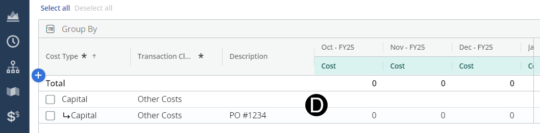 Consult the “Detailed Transaction View” tab to view specific actuals.