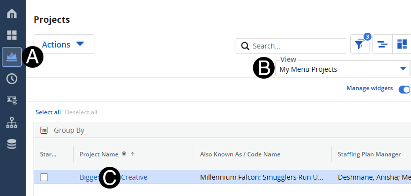 Select My Menu Projects from the View drop-down list.