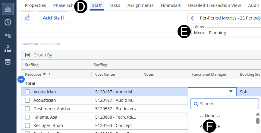 you select a Functional Manager’s