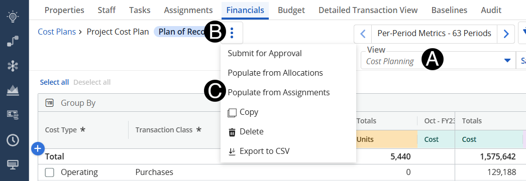 Consult the “Detailed Transaction View” tab to view specific actuals.