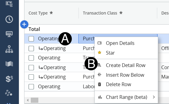 a detailed row on a cost plan. They will aggregate at the header row.