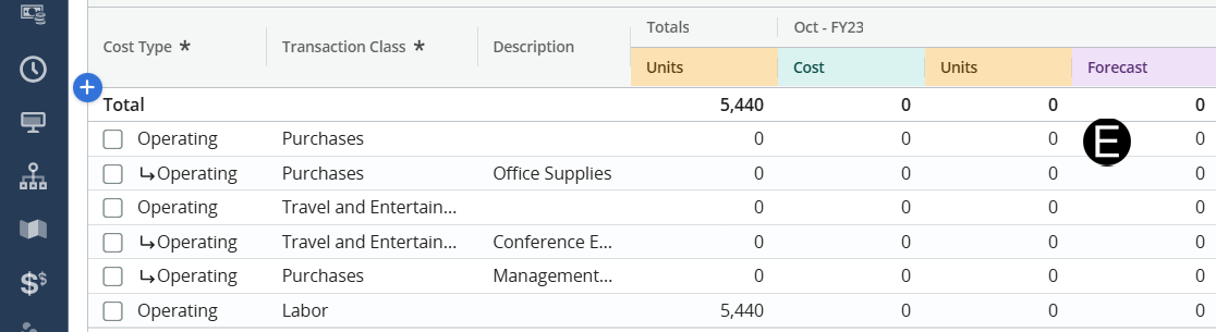detailed rows to more specifically define forecasted costs.