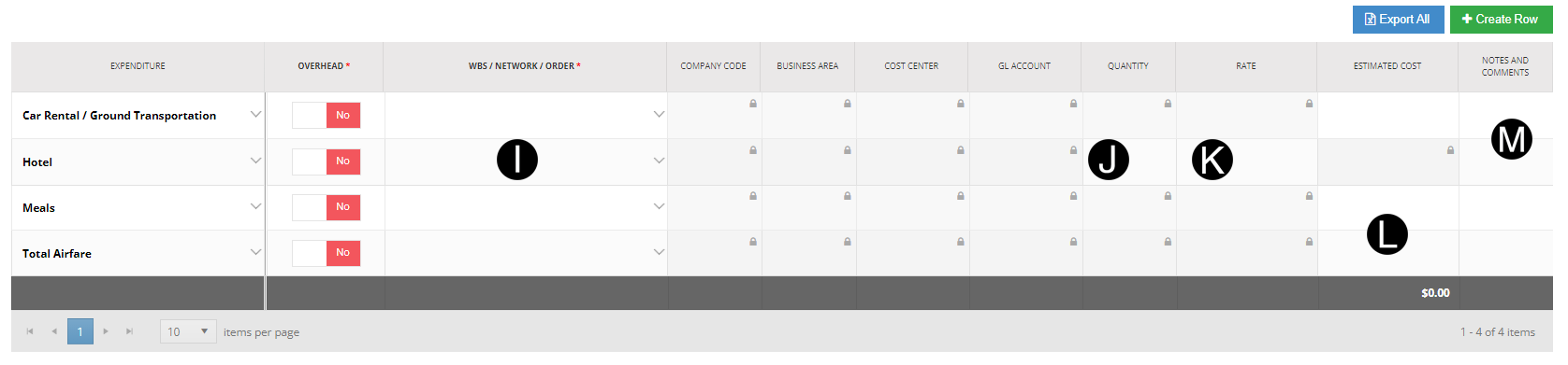 Select WBS/Network/Order from drop down for each row that applies to the Travel Authorization.