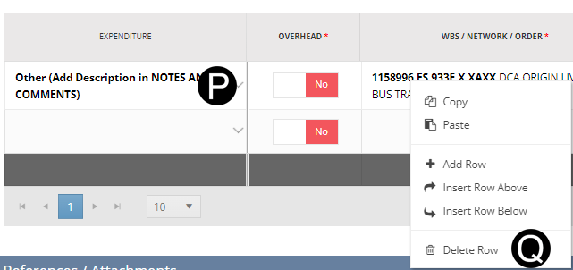 Select WBS/Network/Order from drop down for each row that applies to the Travel Authorization.