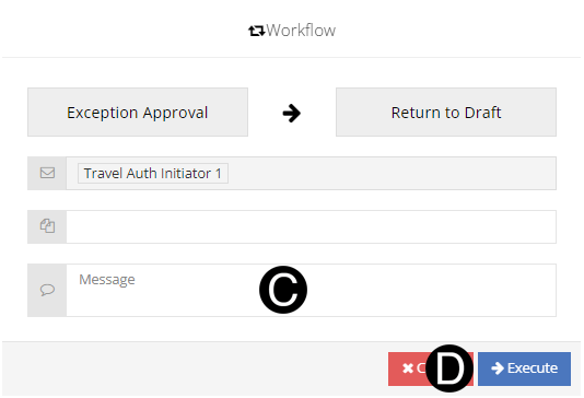 The Policy Exception Approver will receive the Travel Authorization if it included and exception. They will then review the Arrangement Requirements of the Travel Authorization and the requested exceptions.