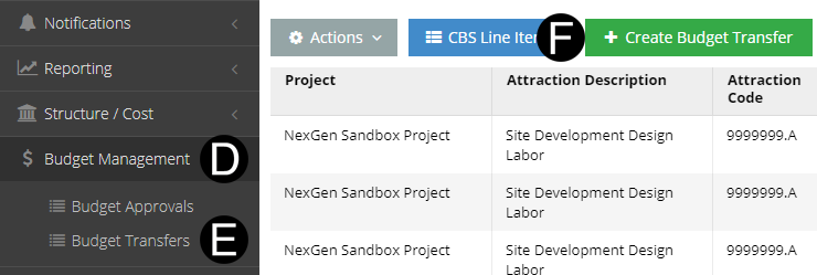 Ability for Finance or Estimator to create a Budget Transfer to re-allocate Budget within the project that impacts Cost Reporting.