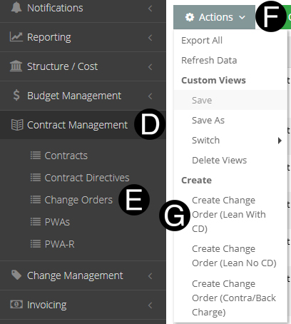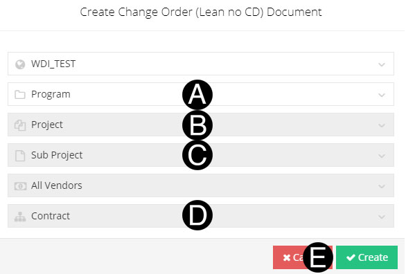 Select Create Change Order (Lean With CD).
