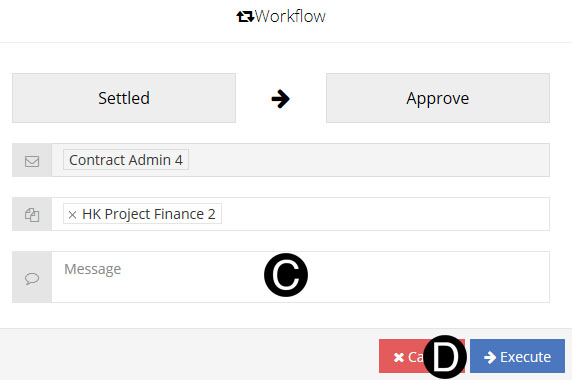 Once a Lean Change Order without CD is submitted by the Responsible Individual it is Workflowed to the Contract Administrator in the Approve state.