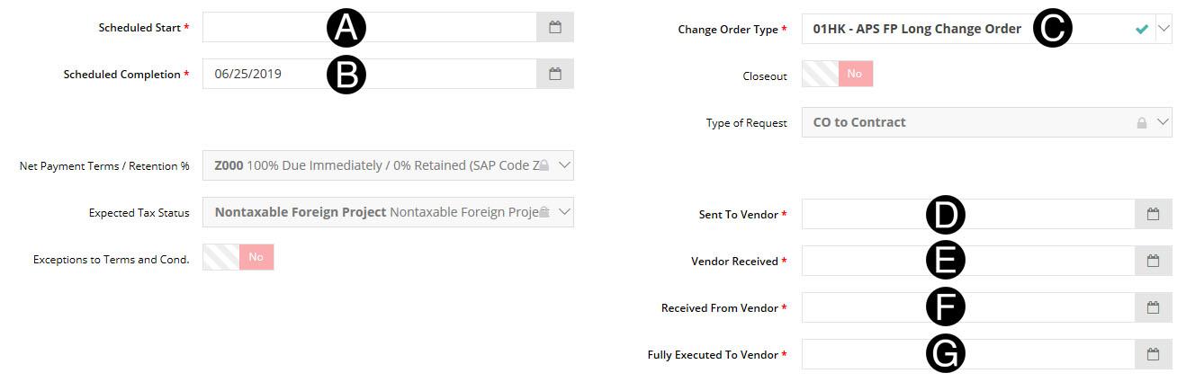 3. Select/Verify Change Order Type.