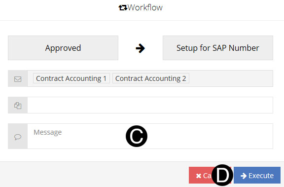 Once a Lean Change Order without CD is submitted by the Contract Administrator it is Workflow to the Contract Accounting for SAP Setup.