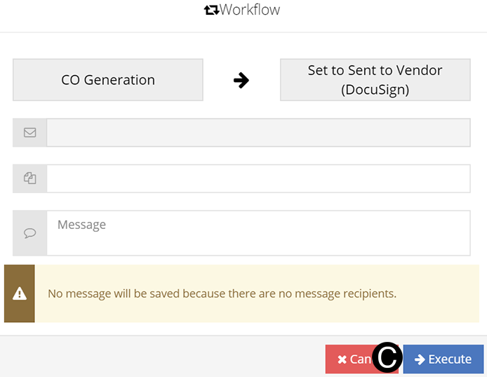 The Contract Administrator will workflow to the Vendor in Sent to Vendor state if participating. If Vendor is not participating the Contract Administrator will workflow to Awaiting Vendor signature.
