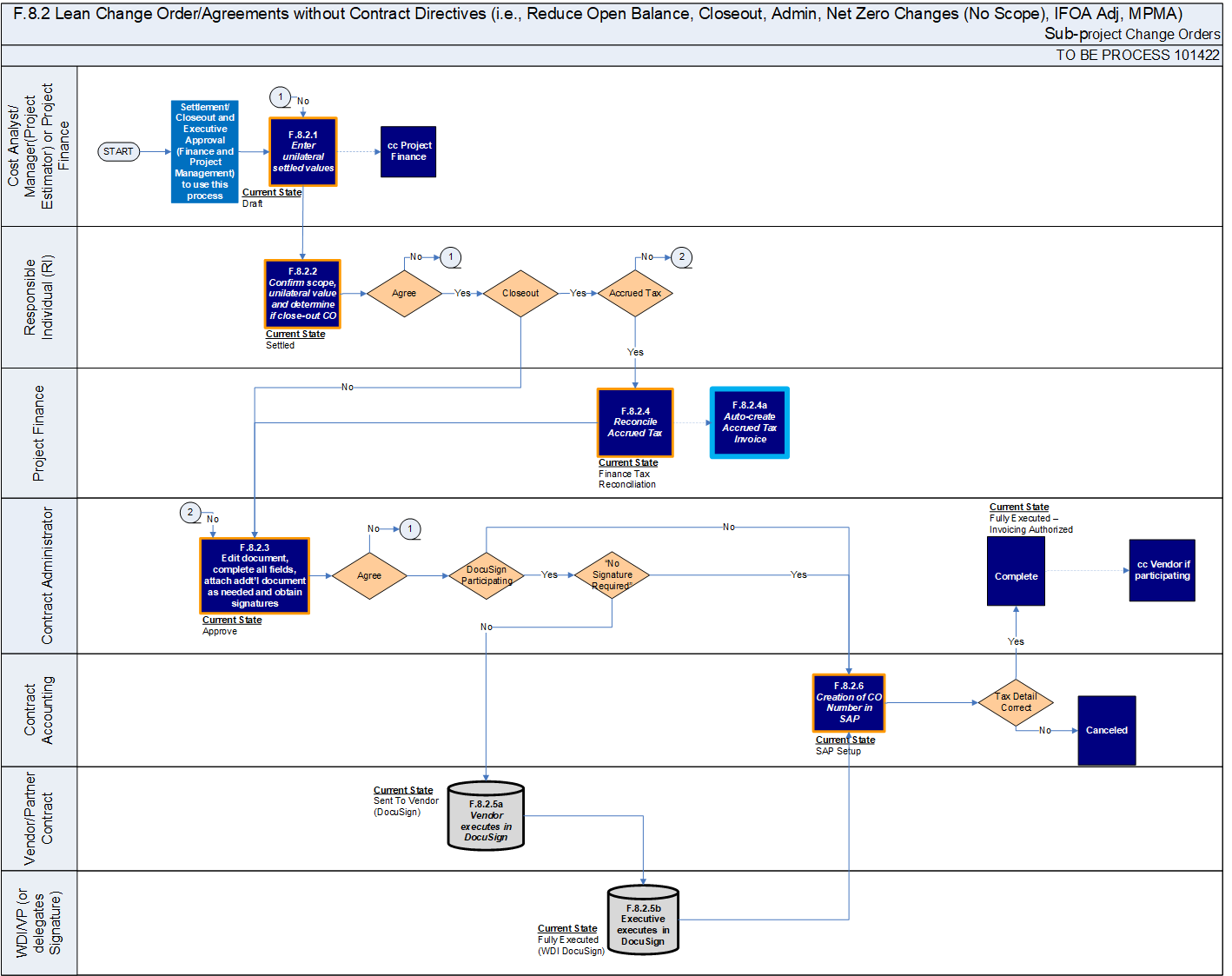 The Lean Change Order without CD is a legally binding document once fully transitioned to the Fully Executed state and can be invoiced against once reached the Fully Executed-Invoicing Authorized State.