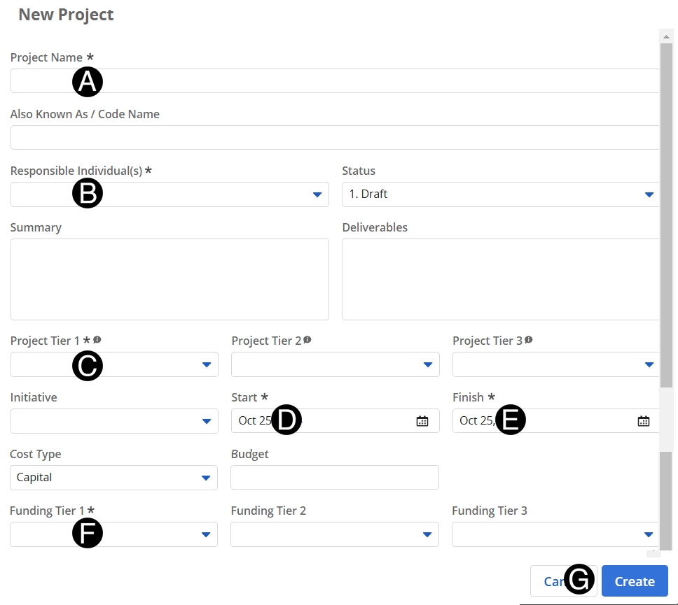 Responsible Individual can begin creating their workplan by entering Role Requests for skill sets needed to execute the project.