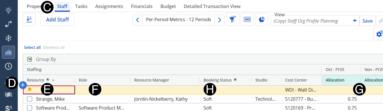 Enter Allocations to match the project needs. (use scroll bar at bottom to so all allocation columns)