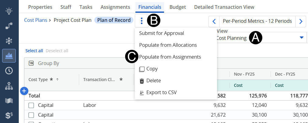 Change View to Cost Planing.