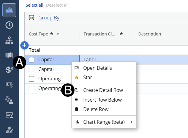 Hover over the row with the expense type you want to add. Right Click.