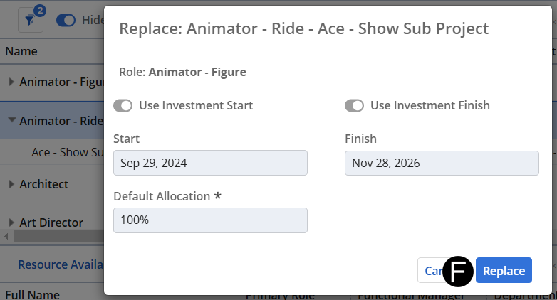 After assessing your team’s bandwidth, decide which of your direct reports is most suited to fulfill the project’s request skillset. If you do not have a named resource who can support the need, you can assign a TBD.